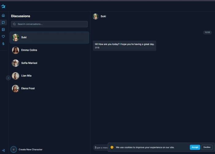 When a user opens the site, they’re taken straight to a chat-style layout that feels familiar, similar to a messaging app or web-based inbox.