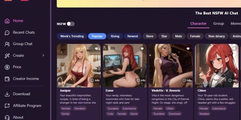 With optional NSFW toggles, advanced and popular character sections, and detailed visual profiles, fall for is about immersion; users pick a character, type a message and slip into an ongoing conversational relationship to enjoy with their AI girlfriend without any fuss.