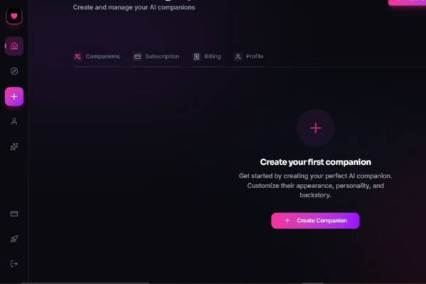 In the middle of the page there’s a “Create Companion” button, and once clicked it will take you to a companion setup page that will help you establish the basics for your companion (like what they look like, what kind of personality they have, etc.